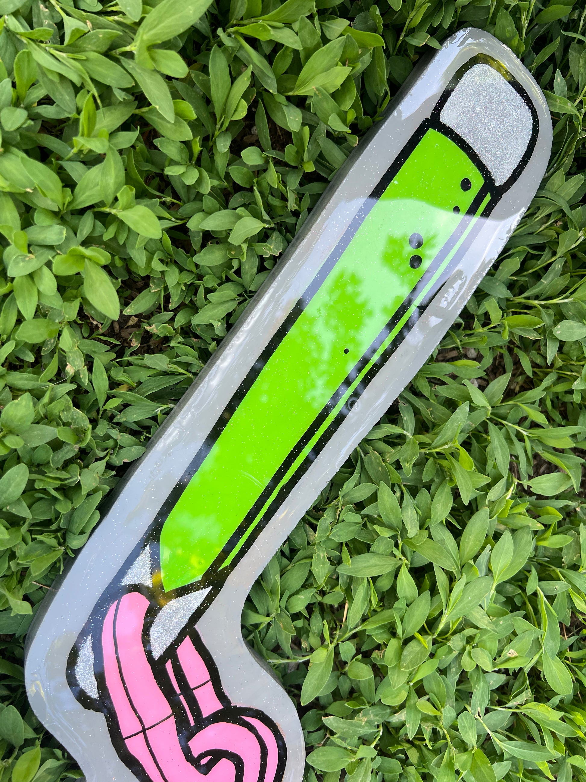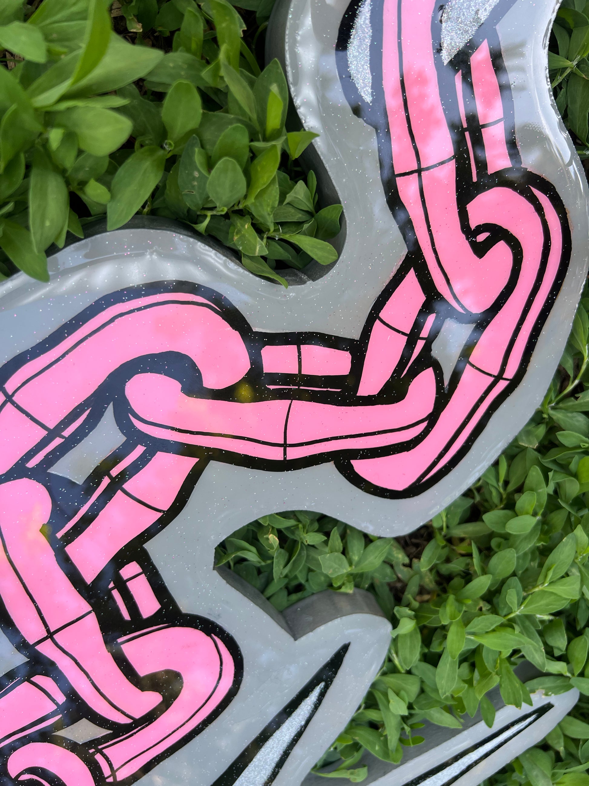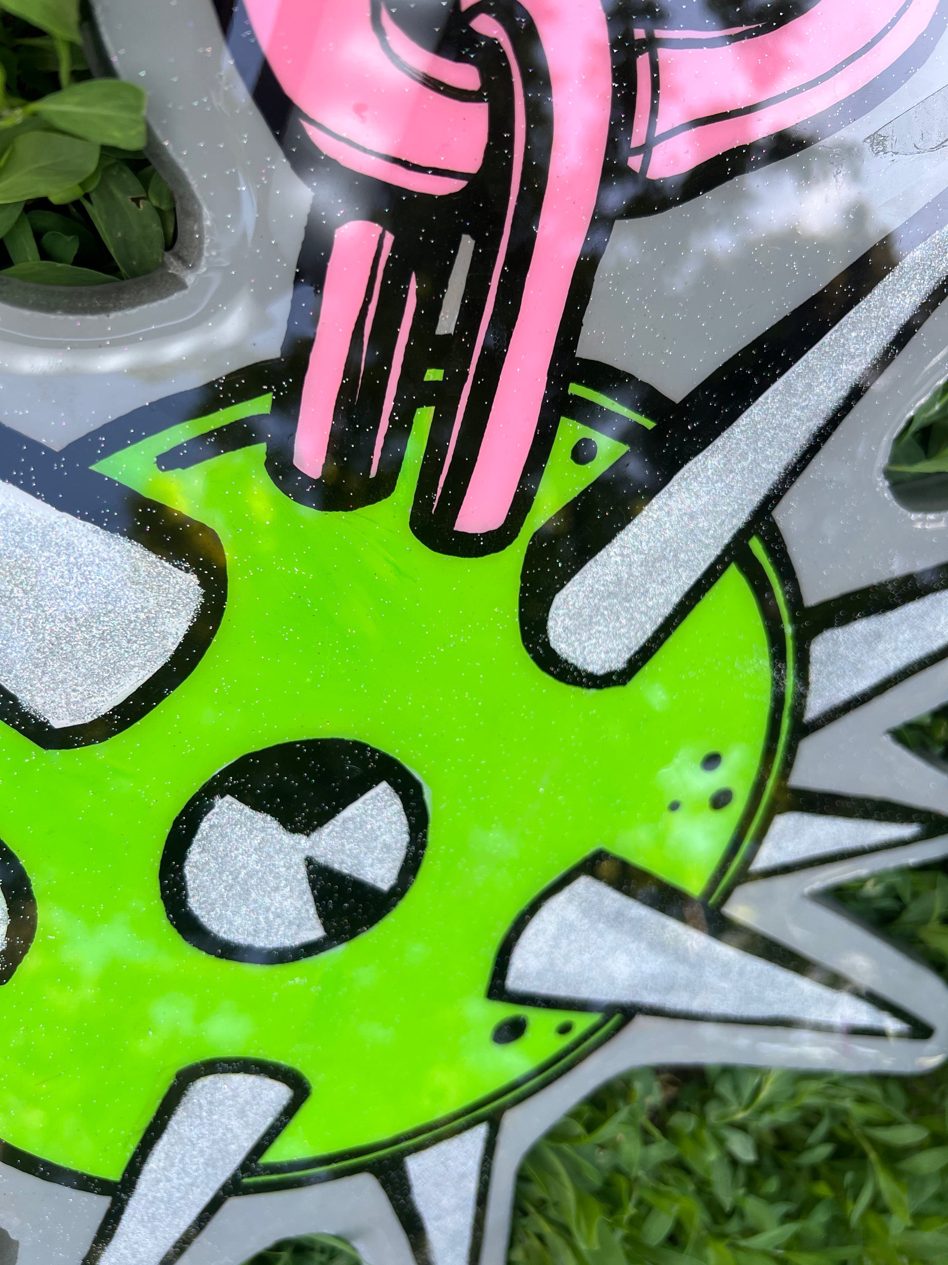 Handcrafted with love! I made this piece by hand cutting mdc board, covering it in paint, and finally adding a layer of glittered epoxy resin. Mounting hardware is attached to the back so that it can hang either vertically or horizontally.